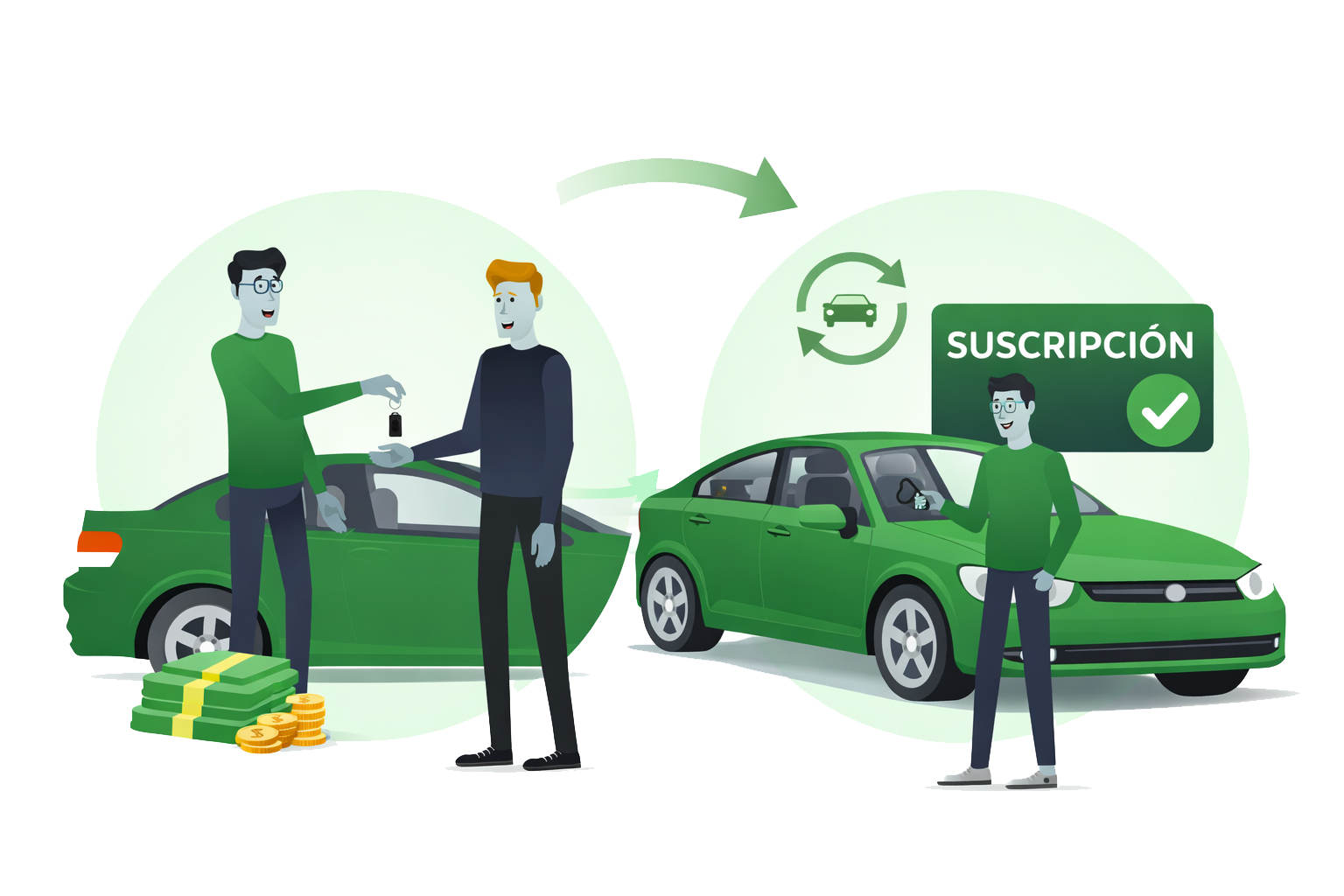 Como propietario de un coche, lo vendes e inmediatamente te suscribes a un alquiler sobre él, obteniendo una rentabilidad, a través de tu vehículo.